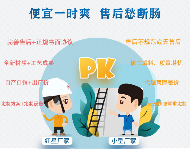 小廠家:建材市場淘一些便宜的材質(zhì)或零件,生產(chǎn)工藝不夠規(guī)范,或二手舊設(shè)備組裝,經(jīng)不起時間的考驗。